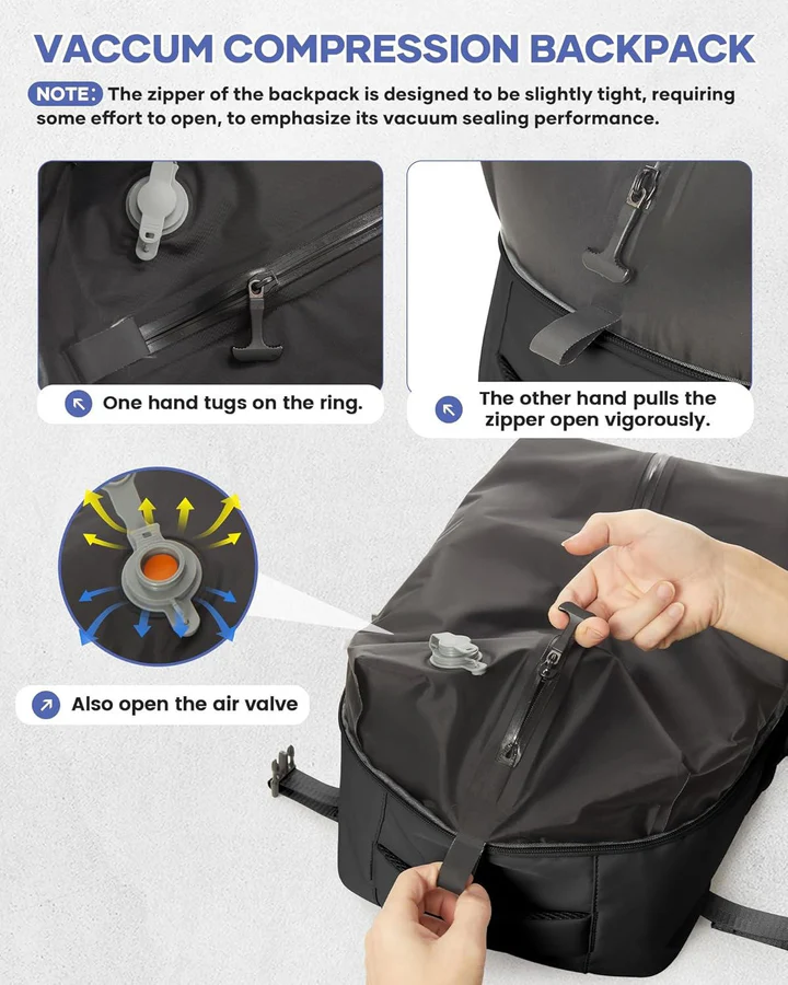 Equipped with a compression layer and vacuum-sealed pocket, the backpack helps reduce bulk when packed. This feature also helps flatten clothes or compress gear, making it a smart choice for travel efficiency.