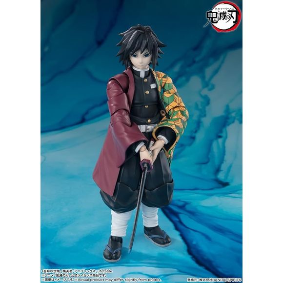 Giyu Tomioka from the anime "Demon Slayer: Kimetsu no Yaiba" joins the "S.H.Figuarts" team from Bandai! With various replacement parts and an amazingly wide range of motion, you can recreate all the impressive battle scenes from the series! In addition to his standard face, three interchangeable faces are included; this figure is sculpted and colored with great attention to detail, including his Nichirin sword and the pattern on his haori. Order him today!