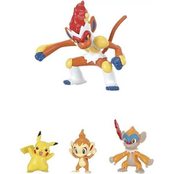 This simple snap-fit plastic kit set allows modelers to build Pikachu and three evolution forms of Infernape, consisting of Chimchar, Monferno, and Infernape. All parts come molded in color and a sheet of stickers is provided for detail so no painting is required.