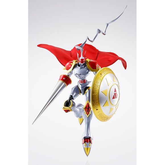 Dukemon, one of the Royal Knights, rejoins S.H.Figuarts as a complete articulated action figure! It features a totally new sculpt and design from the D-Arts Dukemon (sold separately) for even more accurate proportions and poseability! The cloth cape features internal wires for dynamic poses.