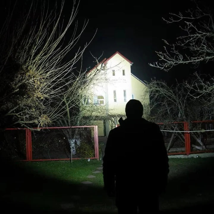 The flashlight operates on rechargeable power and is designed to offer extended runtime between charges. It's lightweight and easy to operate, making it a dependable tool for outdoor activities, home repairs, or emergency use.