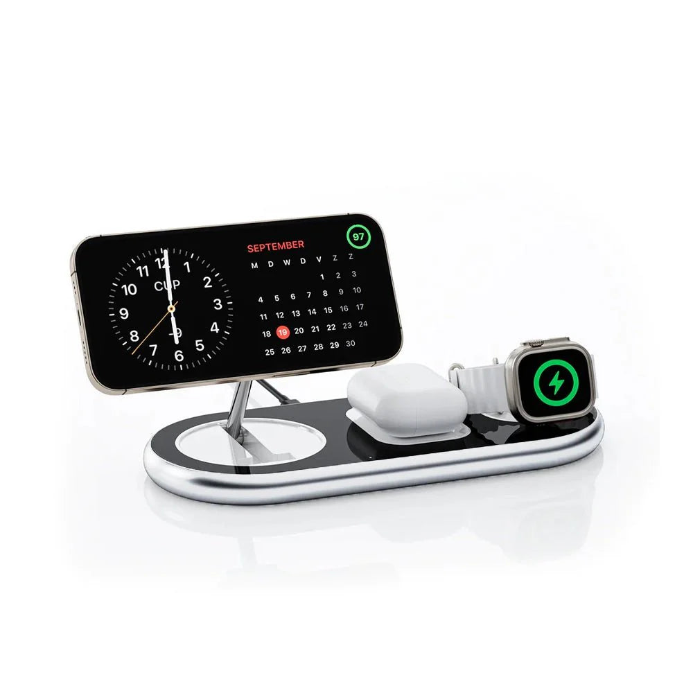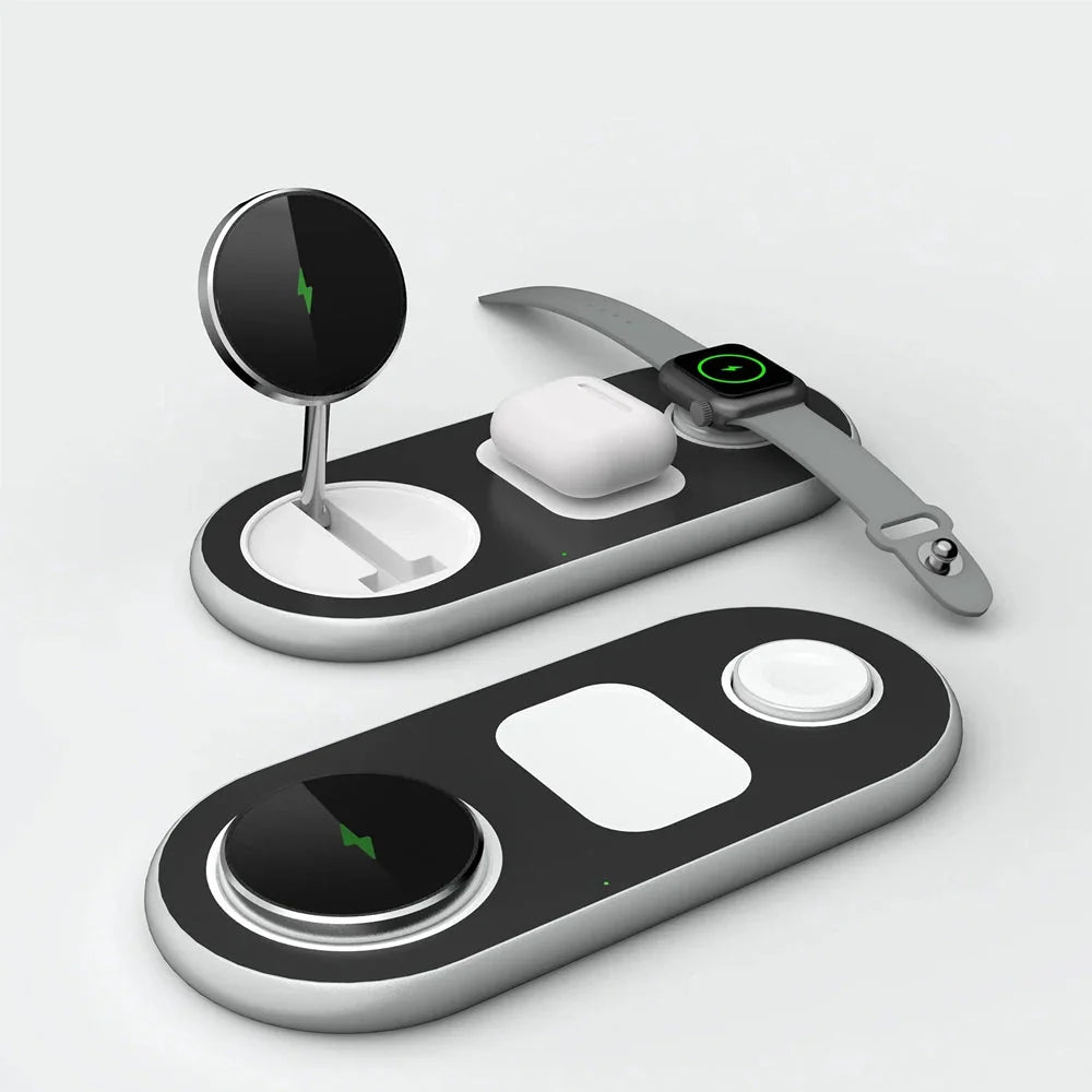 필수 기기를 위한 다재다능하고 접이식 충전 솔루션인 FlexiCharge로 편리함의 힘을 마음껏 누리세요. 효율성과 스타일을 중시하는 분들을 위해 제작된 이 무선 충전 스테이션은 스마트폰, 스마트워치, 이어버드를 동시에 충전할 수 있도록 세심하게 설계되었습니다. 집, 사무실, 이동 중 등 어디에서든 FlexiCharge는 여러분의 기기를 항상 충전하고 바로 사용할 수 있도록 든든한 파트너가 되어 드립니다.