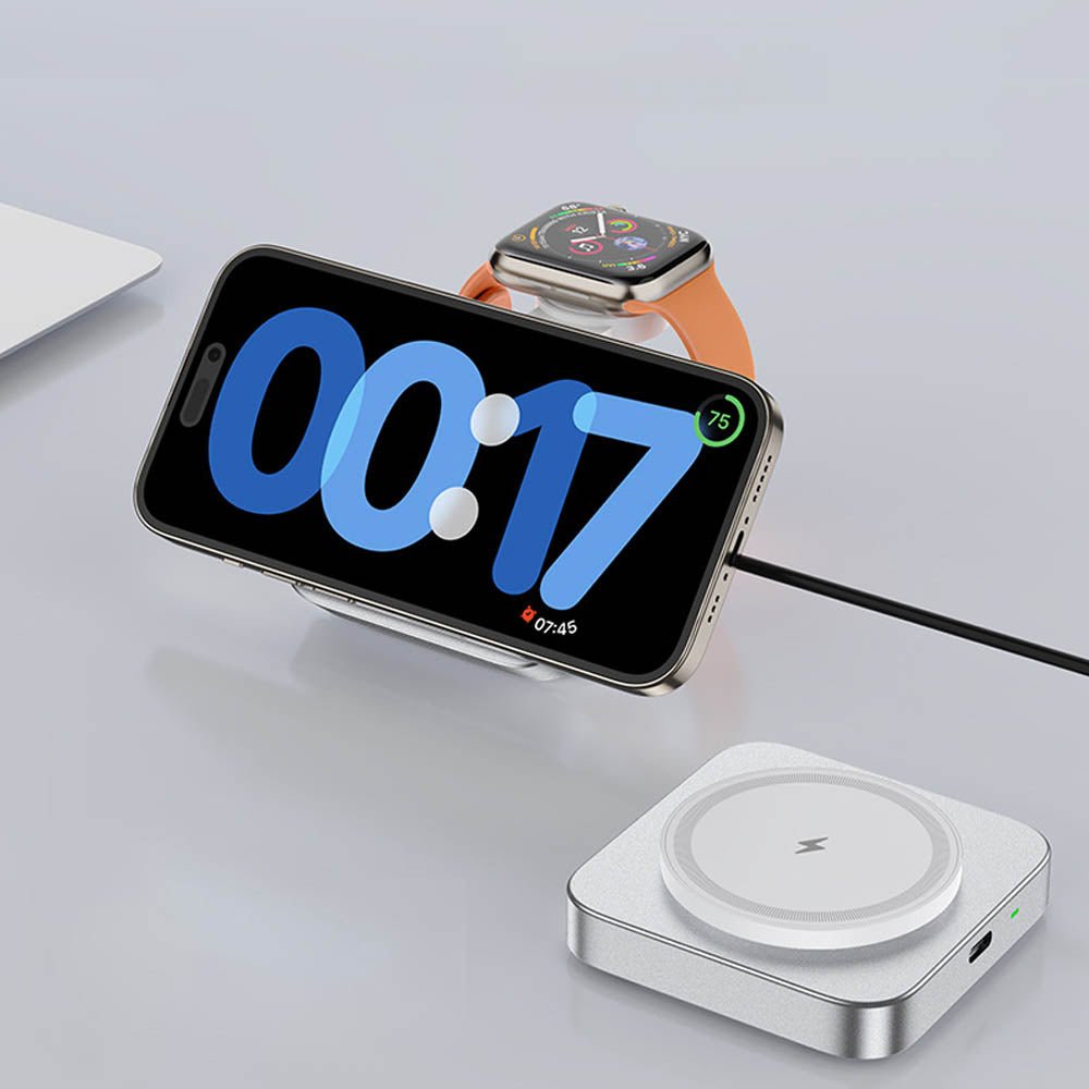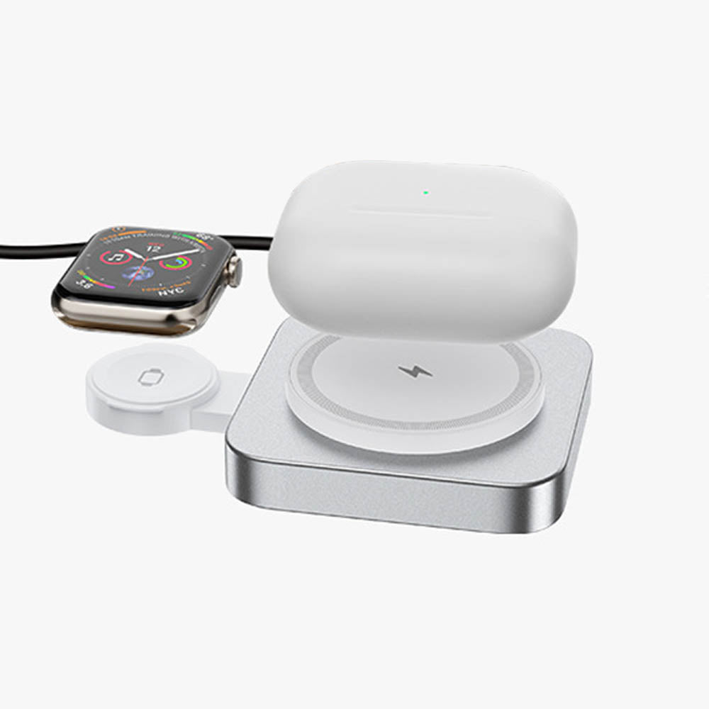 2-in-1 무선 충전 : iPhone, Apple Watch, AirPods를 동시에 간편하게 충전하세요.