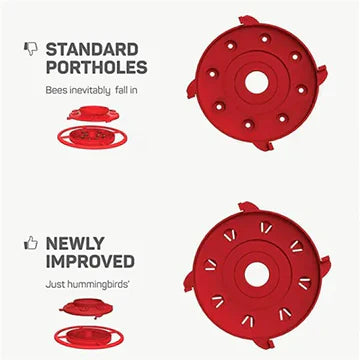 Tiny, precision-sized openings keep bees out of the nectar chamber, while the built-in ant moat atop the feeder holds water to block crawling insects, ensuring only hummingbirds enjoy the sweet reward.