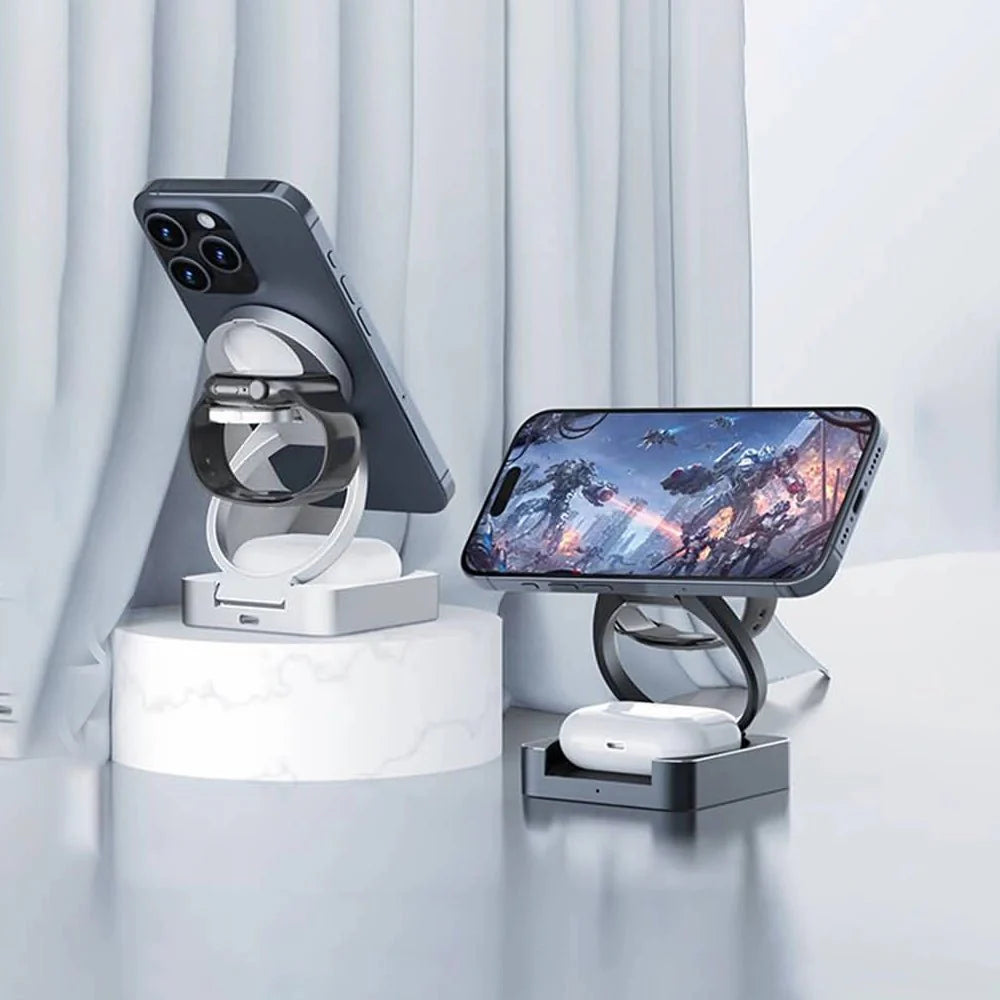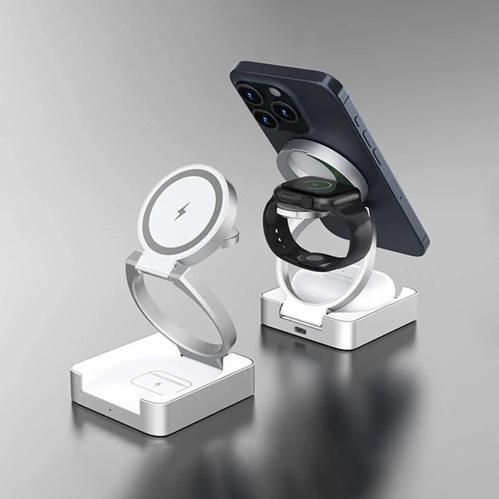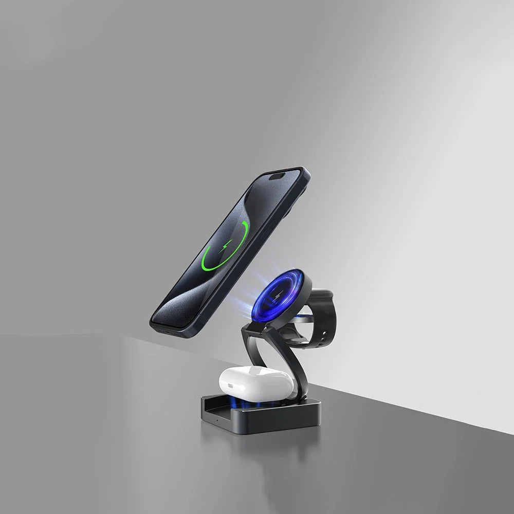 편리함과 효율성을 추구하는 iPhone, Apple Watch, AirPods 사용자에게 꼭 필요한 MagFold Trio 3-in-1 무선 충전기를 소개합니다. 이 세련된 접이식 충전 스테이션은 모든 Apple 기기를 동시에 충전할 수 있습니다. 마그네틱 고속 충전 기능을 탑재하여 더욱 빠르고 안정적인 충전을 보장합니다. 미니멀한 디자인 은 작업 공간을 정돈되고 스타일리시한 공간으로 바꿔줍니다. 여행에 안성맞춤인 접이식 디자인 은 휴대성이 뛰어나 어디에서나 끊김 없는 충전을 즐길 수 있습니다. MagFold Trio 3-in-1 무선 충전기 로 충전 경험을 업그레이드하고, 이 효율적인 올인원 솔루션으로 더욱 편리한 생활을 누리세요.