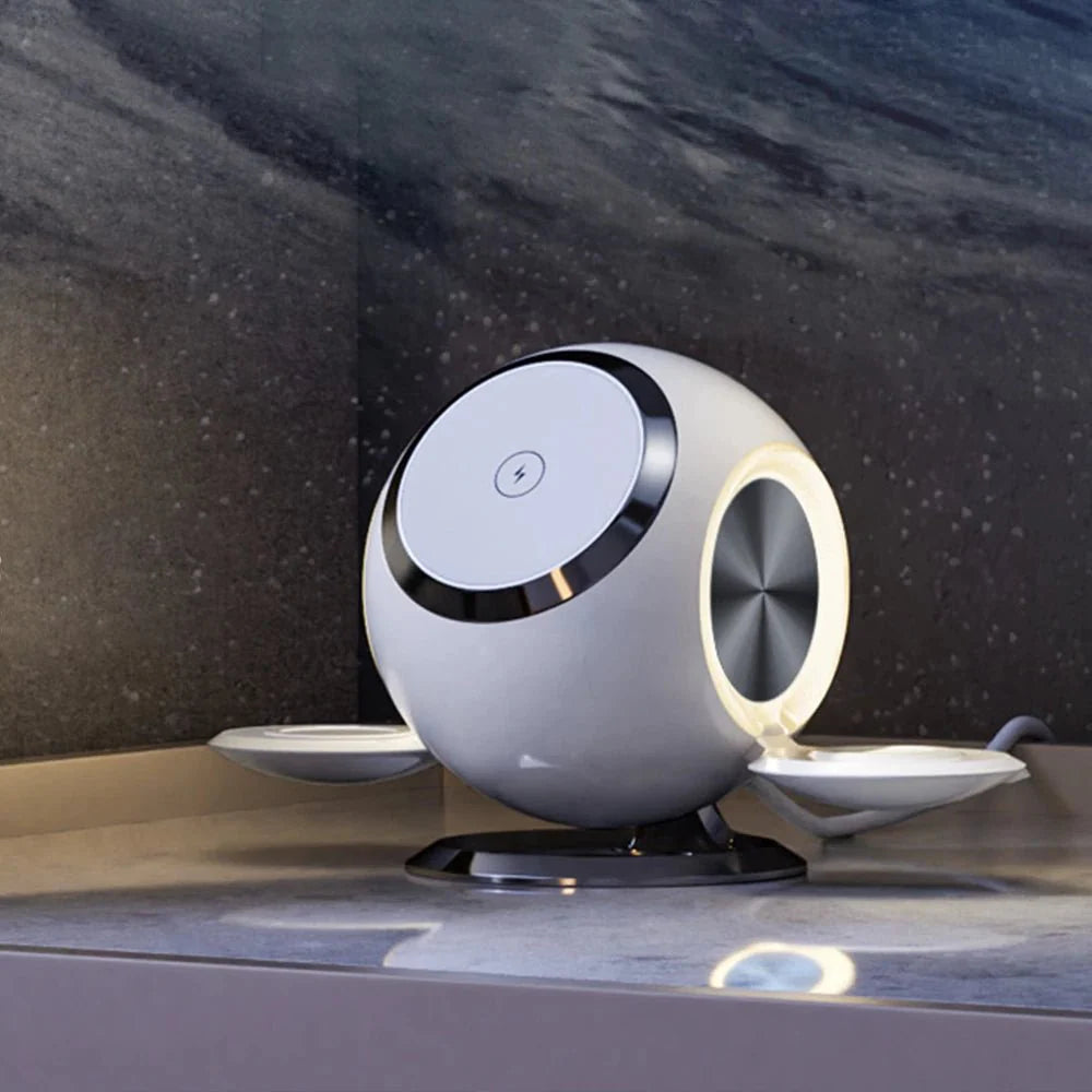 OrbitSync 3 in 1 MagSafe 충전 스테이션을 소개합니다. 편리함과 효율성을 새롭게 정의하는 혁신적인 충전 솔루션입니다. 초고속 충전 기능 과 고급 안전 기능을 갖춘 OrbitSync는 기기의 빠르고 안전한 충전을 보장합니다.
