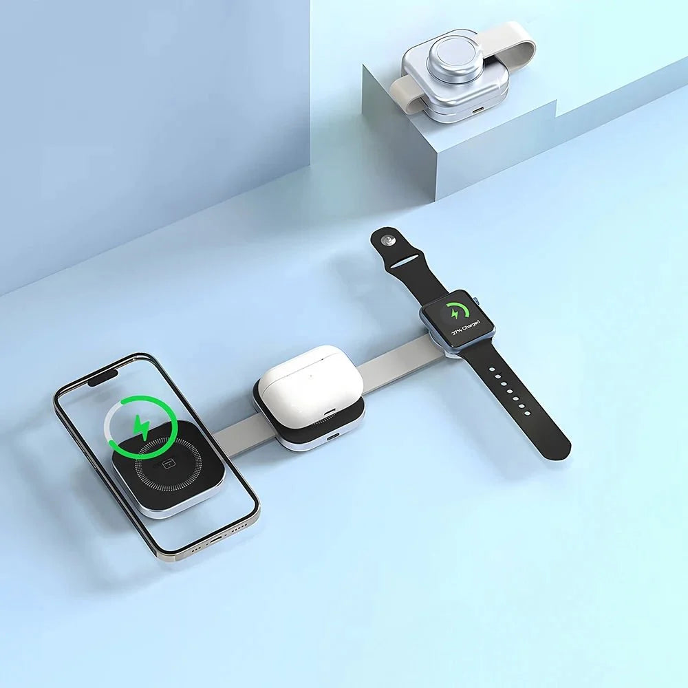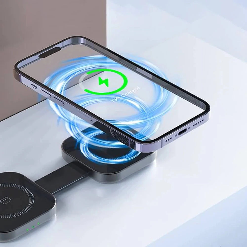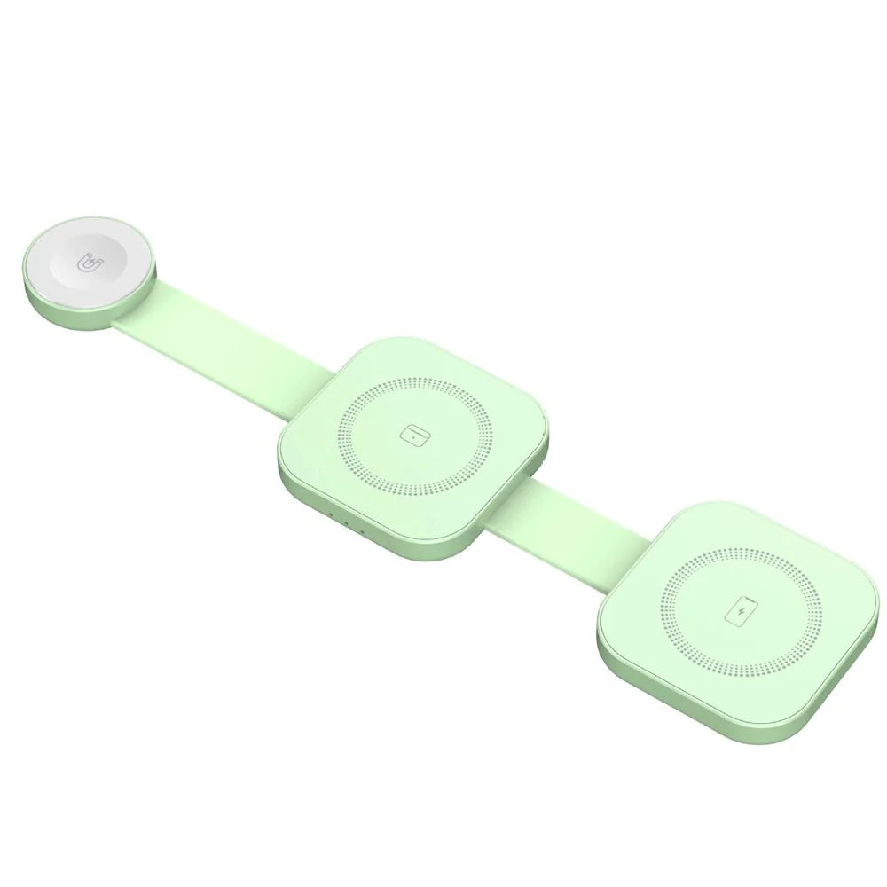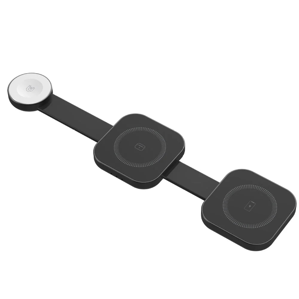 강력 하고 컴팩트하며 안전한 15W 무선 충전기, PowerMax Trio 접이식 3 in 1 무선 충전기를 소개합니다. 당신의 삶을 더욱 편리하게 만들어 줄 것입니다. 이 충전기는 과전류, 과전압, 과열 , 단락 및 자기장 으로부터 보호하는 스마트 칩 보안 기능 을 갖추고 있습니다. 15W 고속 충전 으로 기기를 빠르게 충전할 수 있습니다. 접이식 디자인 으로 휴대가 간편하고 여행에 적합하며, 자석 정렬 기능으로 정확하고 간편한 충전이 가능합니다. 최대 3대의 기기를 동시에 충전 할 수 있고, 이물질 감지 기능 으로 충전 문제를 방지하는 PowerMax Trio 접이식 3 in 1 무선 충전기는 어수선함과 작별하고 어디서든 효율적이고 안전한 충전을 즐길 수 있도록 도와줍니다.