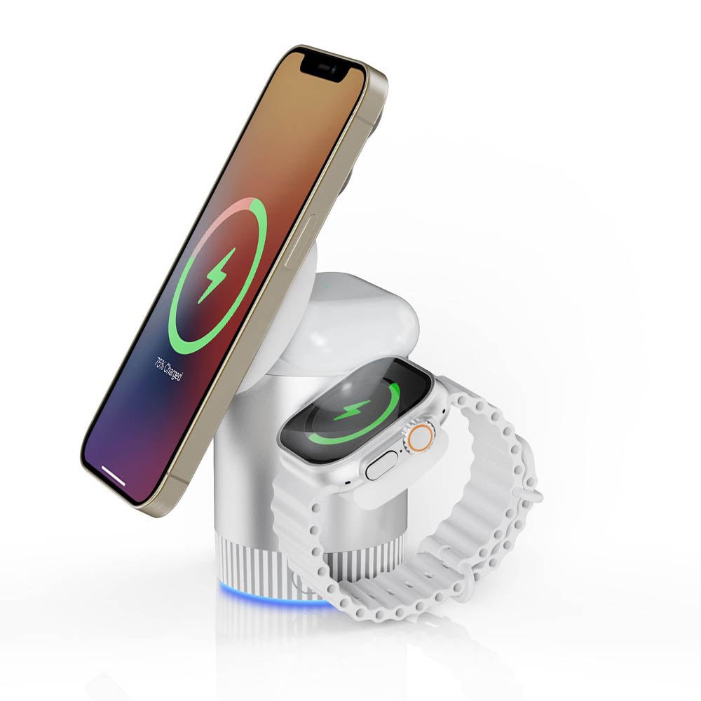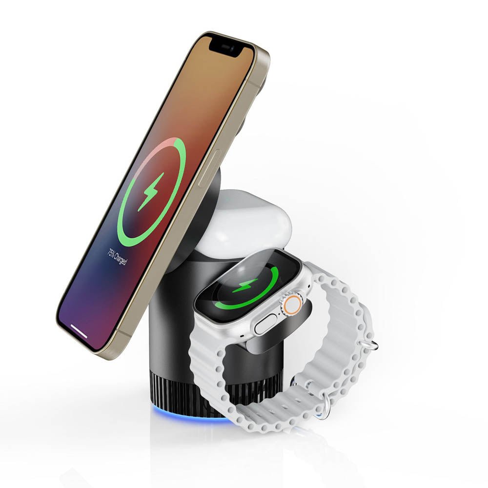 3-in-1 충전 : iPhone(MagSafe 호환), Apple Watch, AirPods를 동시에 충전할 수 있어 케이블이 복잡해지는 것을 방지합니다.