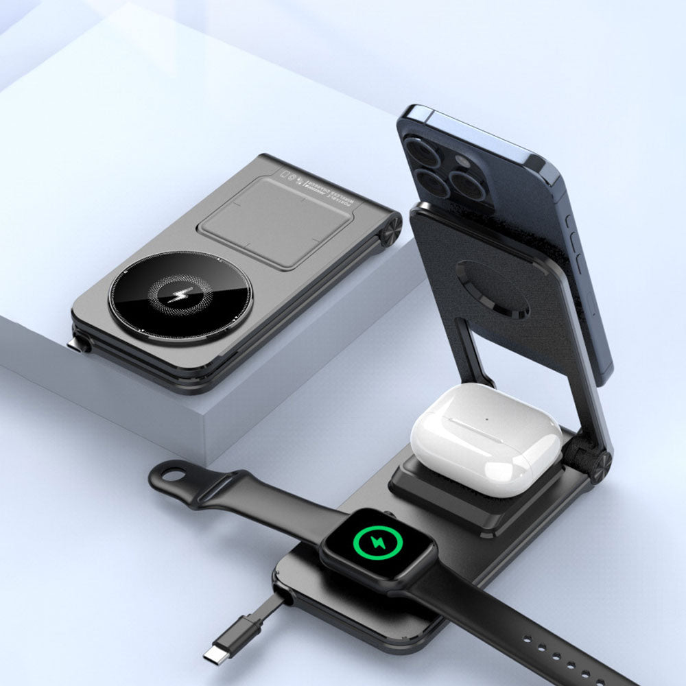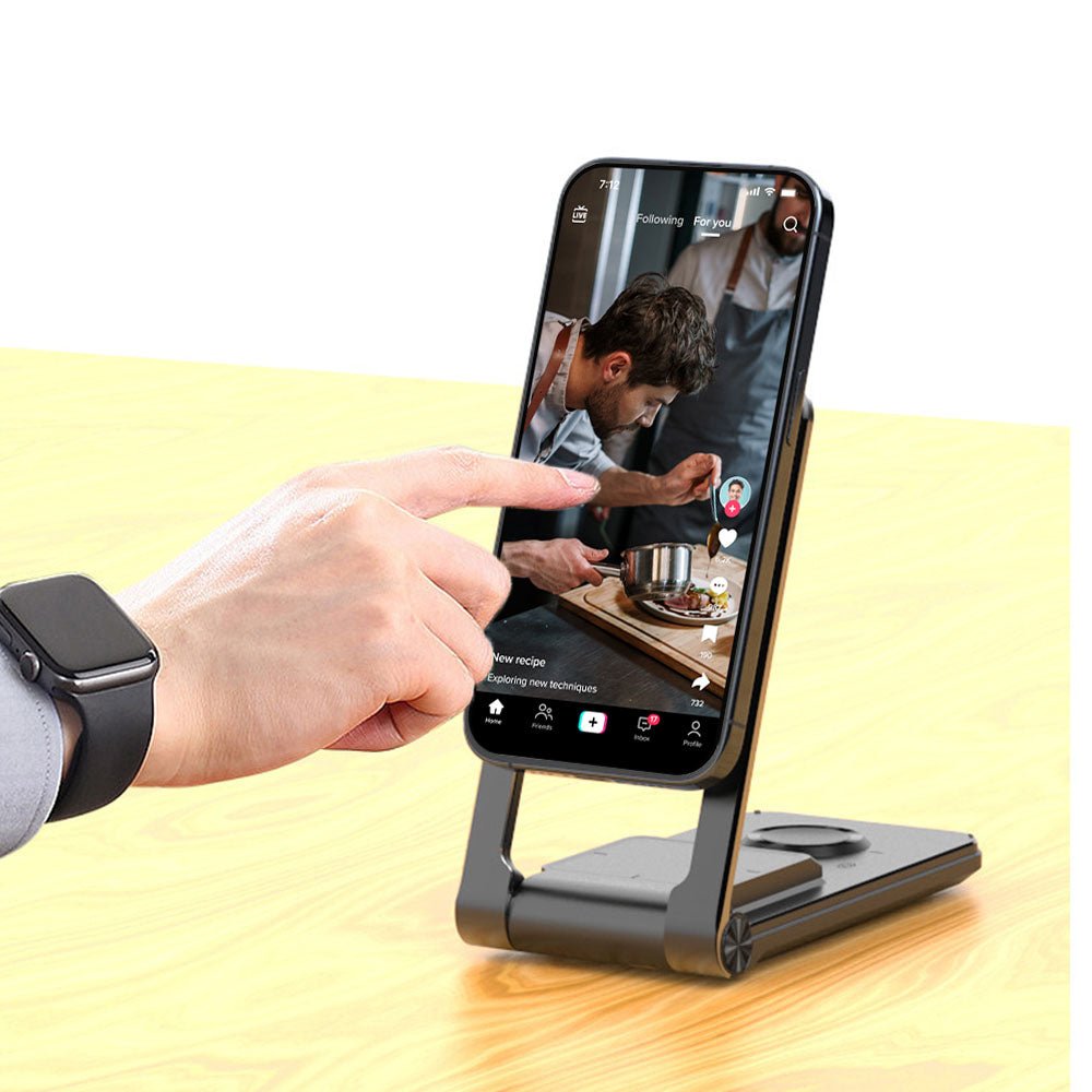 3-in-1 무선 충전 기능 : 스마트폰, 스마트워치, 무선 헤드폰을 동시에 충전합니다.