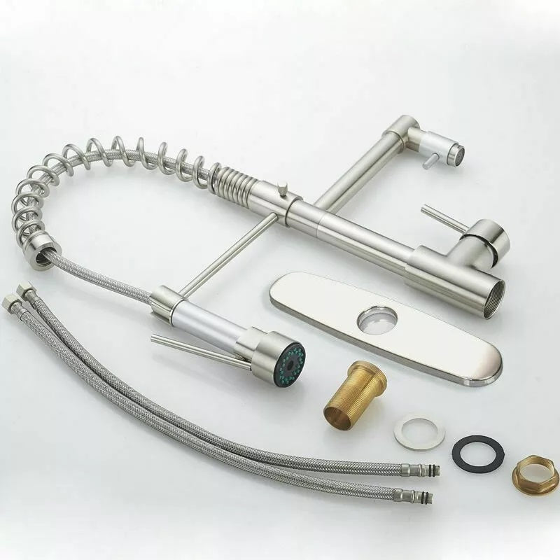 Effortlessly direct water flow with our Kitchen Faucet's flexible spout, providing a full range of motion. The pull-out design of this chrome kitchen faucet makes washing large dishes and sinks a breeze. Enjoy the convenience and efficiency of a sprayer faucet kitchen setup, designed to streamline your daily kitchen tasks with ease.