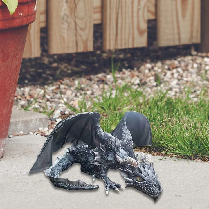 Add a bold, mythical accent to your outdoor space with this crouching dragon guardian statue. Crafted with intricate detailing, it brings a unique gothic charm to patios, pathways, or garden entrances. Its crouched posture and expressive features give it a commanding presence in any setting.