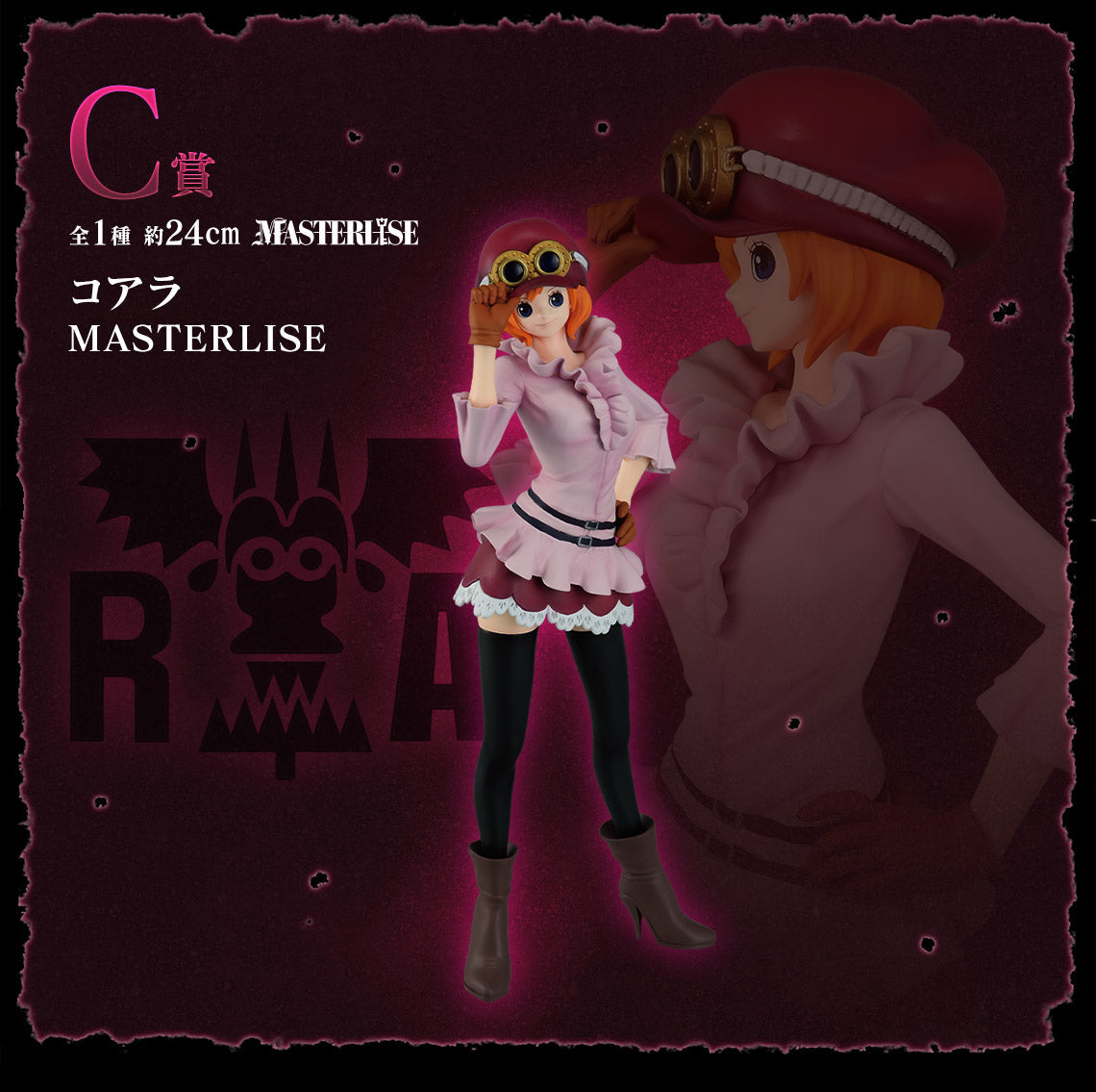 Koala est représentée dans sa tenue emblématique, avec son haut rose à volants, sa jupe courte et son bonnet rouge orné de lunettes de protection. Les détails de sa posture, la finesse des plis de son vêtement et le réalisme de son expression rendent cette figurine particulièrement fidèle au personnage tel qu’il apparaît dans l’arc de Dressrosa. Le travail de peinture met en valeur les nuances de son costume et la texture de ses bottes, ajoutant une profondeur remarquable à cette pièce de collection.