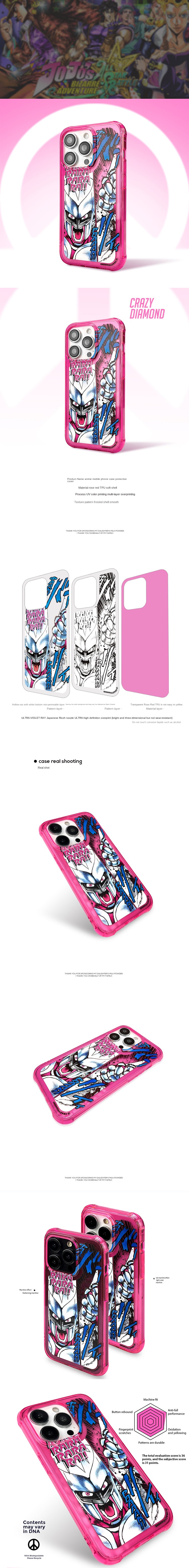 Inject the spirit of JOJO's Eternal Diamond into your phone with this Josuke-themed phone case. The bright pink background combined with Higashikata Josuke's dynamic pose creates a vibrant and personal design that will make your device stand out from the crowd.