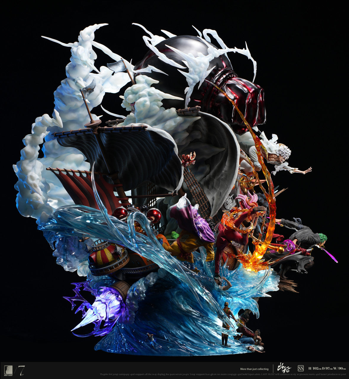 Celebrate the unforgettable legacy of One Piece with this breathtaking 7-Year Celebration Battle Statue by Last Sleep Studio! This extraordinary diorama brings together iconic Straw Hat Pirates and their legendary battles in one awe-inspiring piece. From Luffy unleashing fiery punches, Zoro’s masterful swordsmanship, and Sanji’s blazing kicks, to unforgettable allies and foes like Jinbei and Nami joining the fray, every character radiates power, emotion, and energy.