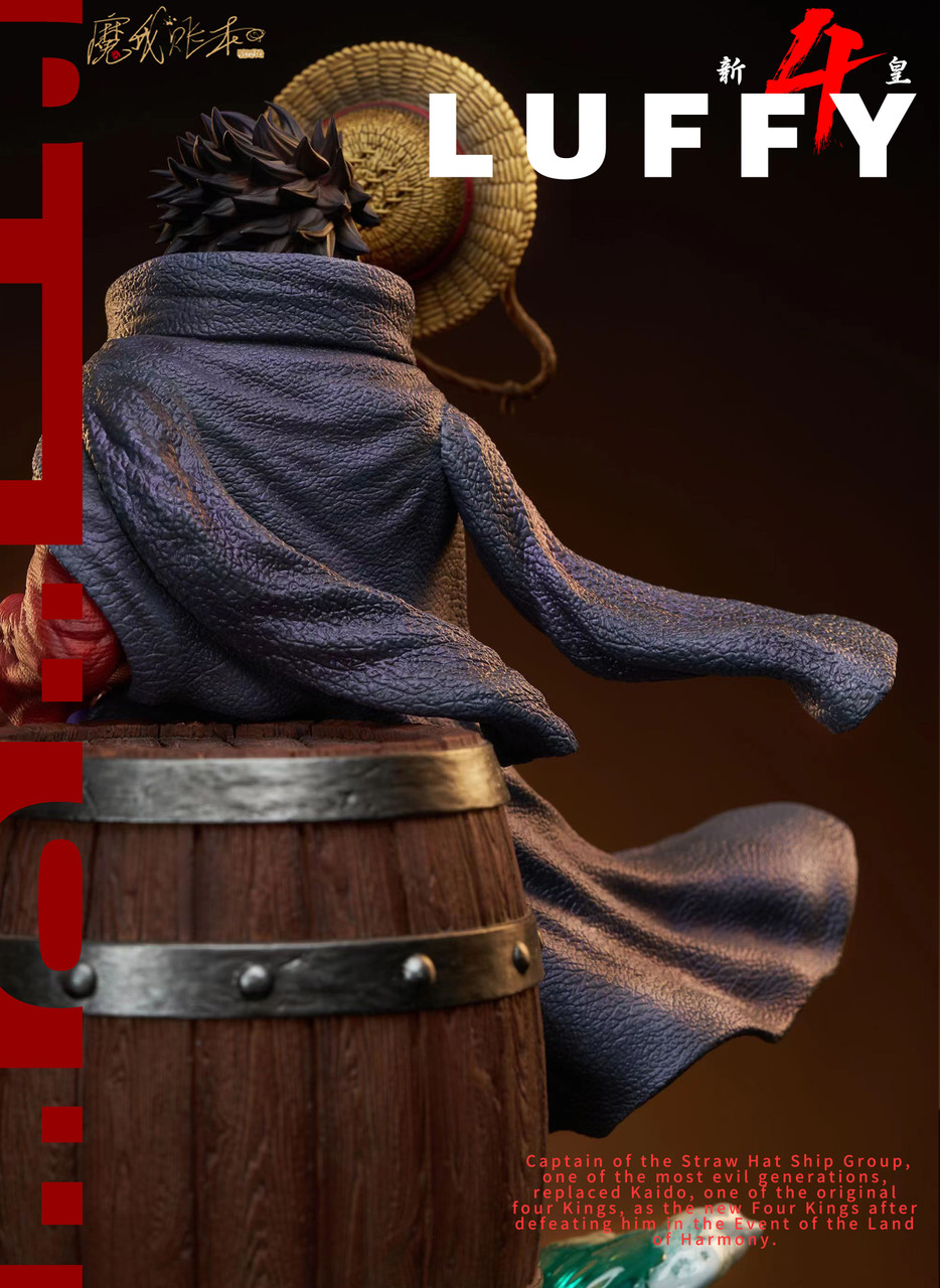 Ready to crown your collection? MWZB Studio brings the Straw Hat legend himself to life with this stunning Luffy resin statue, celebrating his rise to Emperor status after toppling Kaido in the Land of Wano. Leaning coolly on a barrel, finger balanced on his iconic hat, scarred chest bared with pride, this is peak post-Wano Luffy energy.