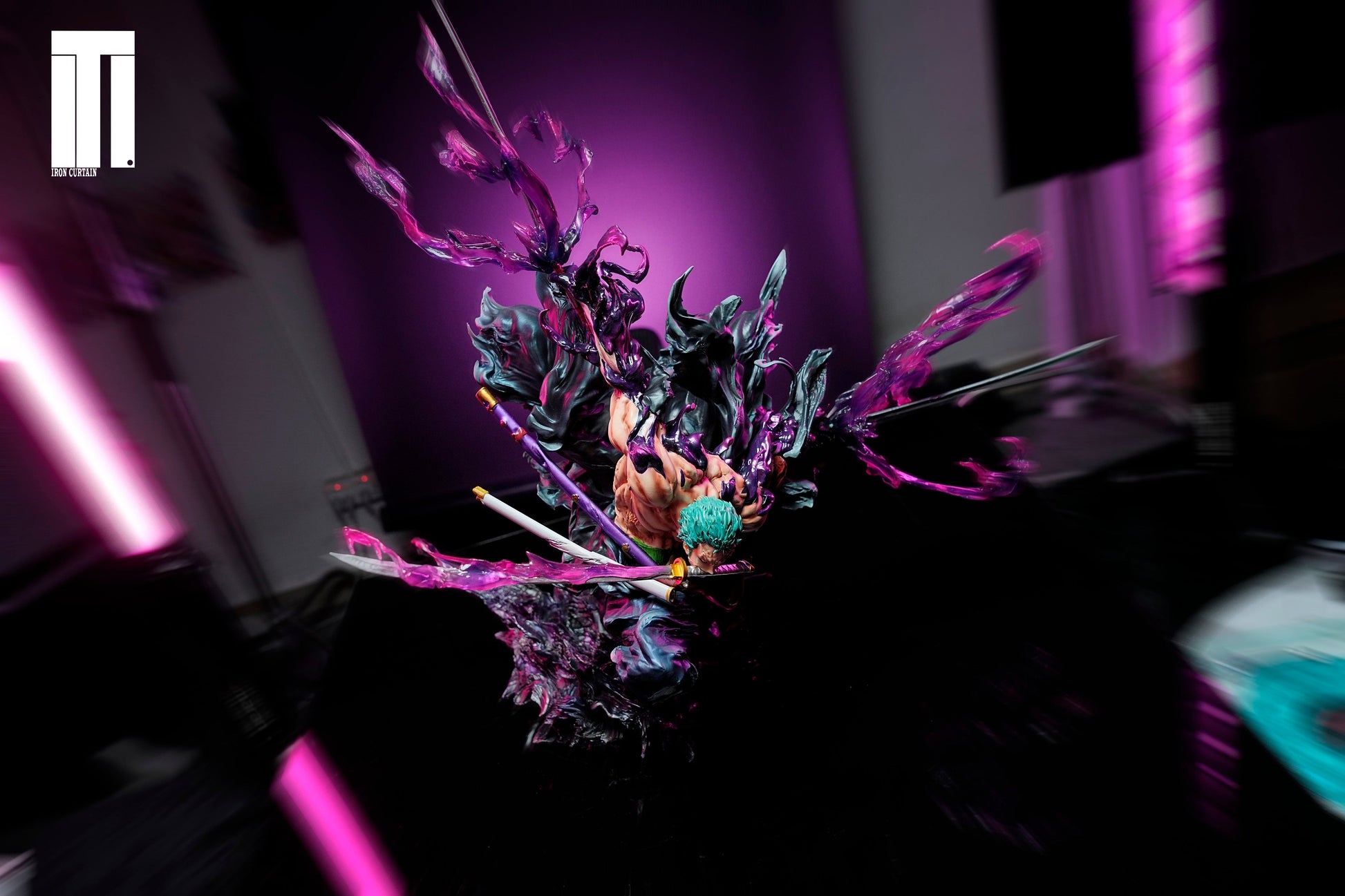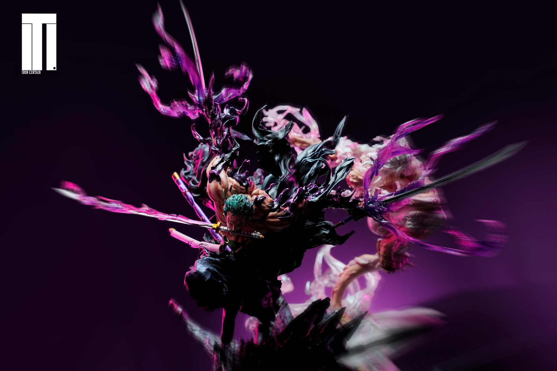 Wunderbar verarbeitete und sehr detaillierte Zoro Statue aus Polystone - künstlichem Stein-Harz-Gemisch.