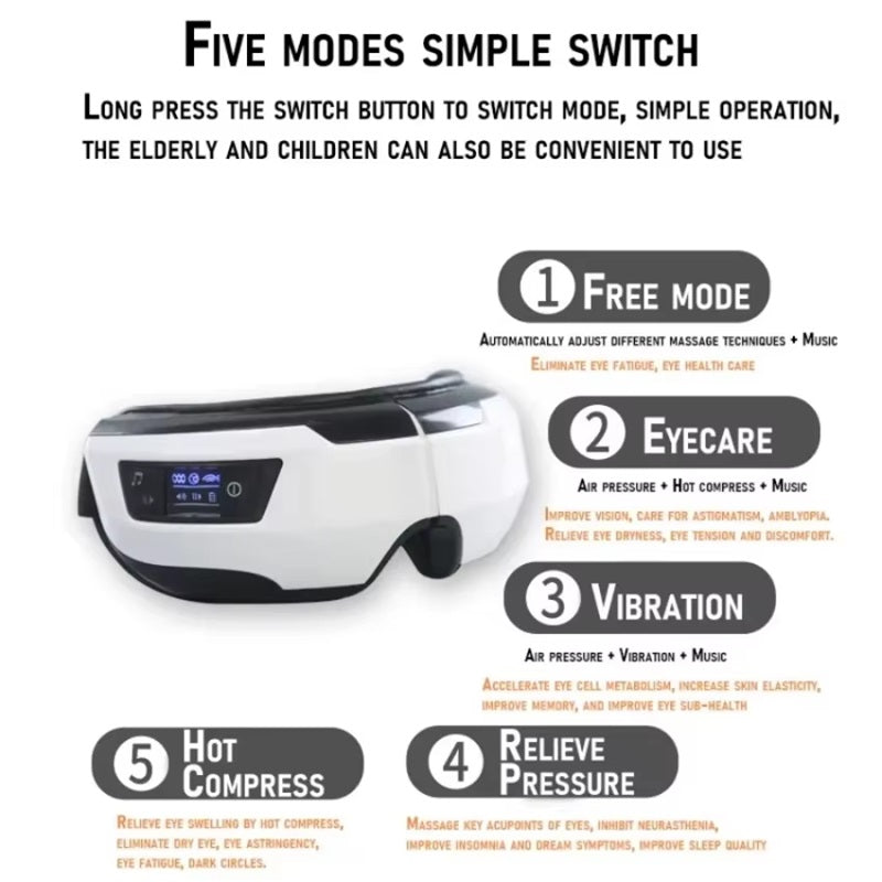 Our Eye Massager works by using air pressure, vibration, and heat to massage the areas around your eyes, relieving fatigue and tension.