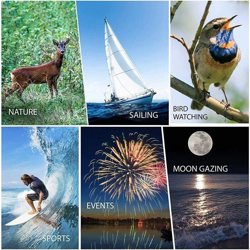 The 50mm objective front lens and upgraded 20mm eye lens provide you with a wide-angle view. Perfect for hiking, bird watching, hunting, climbing, ball games, concerts, watching wildlife, and scenery.