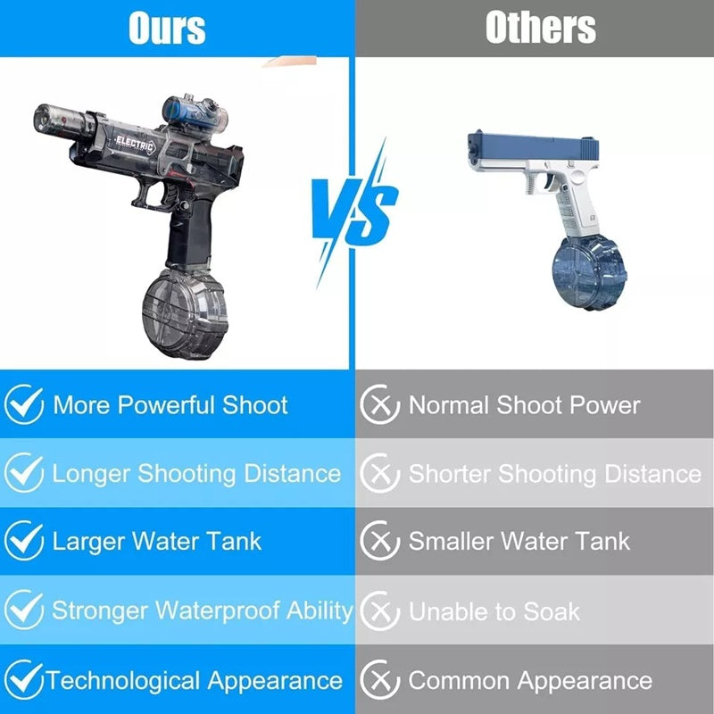 Outplay your opponents with our electric water gun's impressive shooting range of up to 26 feet. This super soaker water gun gives you a significant tactical edge, allowing you to strike from a distance and maintain control of the battlefield. Perfect for those who want a powerful water gun that offers superior range and precision, ensuring you stay ahead in every water battle.