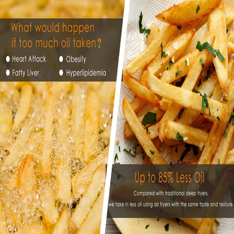 Using advanced heating elements, our Air Fryer Oven ensures your meals cook evenly on all sides in a whirlwind of superheated air. This innovative feature delivers crispy, delicious flavors without the need for added fats, oils, or unhealthy grease. Enjoy chef-quality results in a compact oven that cooks 40% faster than regular ovens, making it the perfect solution for busy families who want healthy, tasty meals in less time.